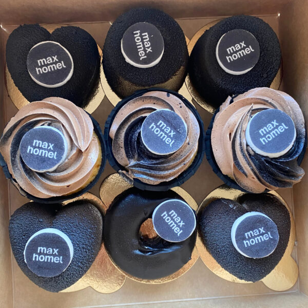 Zamów mix słodkości z logo firmy. W skład naszego mixu wchodzą: malinowe monoporcje musowe, brownie w formie donutsów oraz muffiny czekoladowe. Wybierając ilość, wybierasz ile sztuk słodkości ma zawierać całe zamówienie.